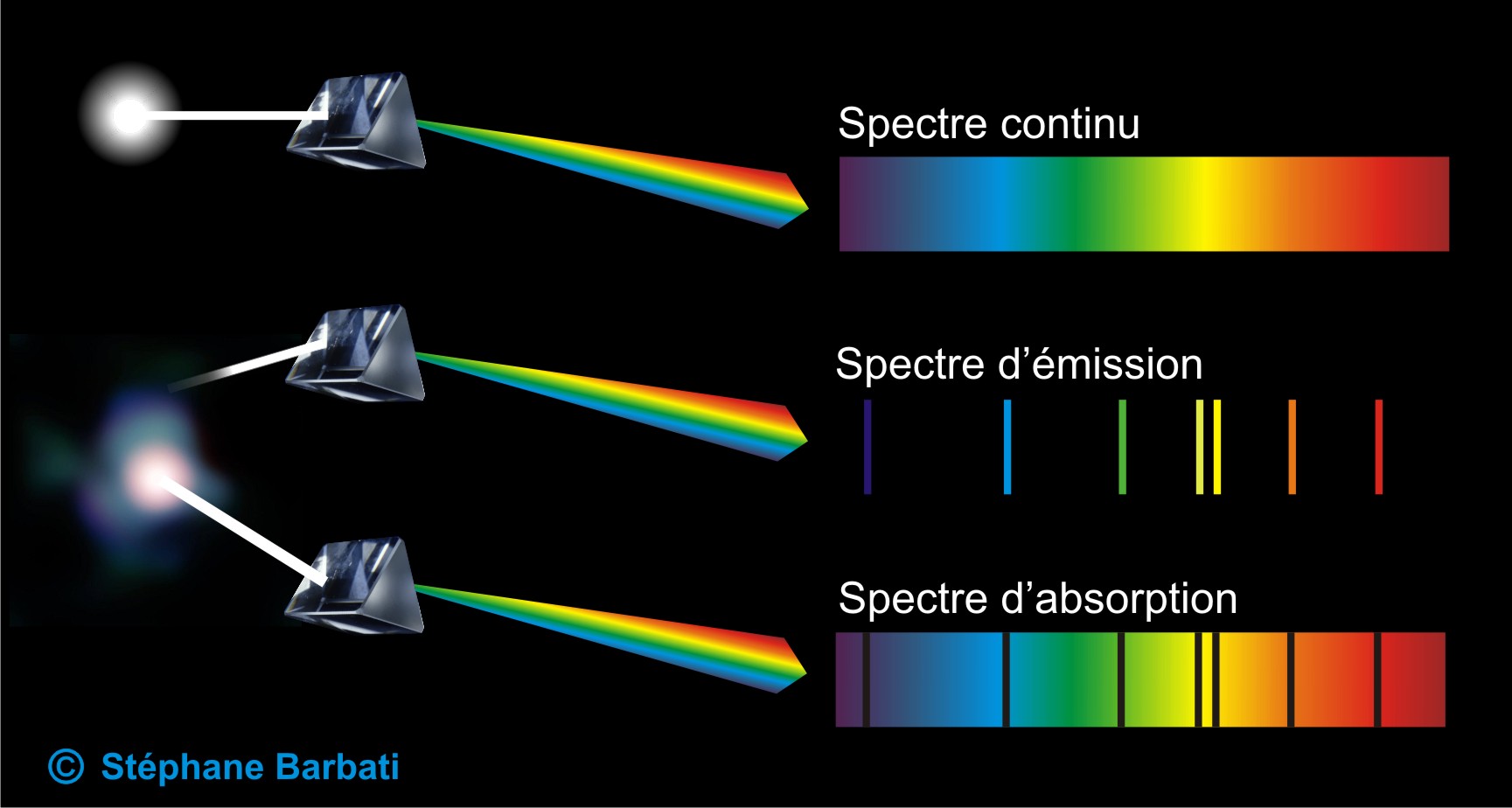 4407spectre-absorption-emissionIl faudra attendre 1859, Gustave-Robert Kirchoff  et Robert-Wilhelm Bunsen pour associer ces raies à la composition chimique des éléments. La SPECTROGRAPHIE vient de naître.