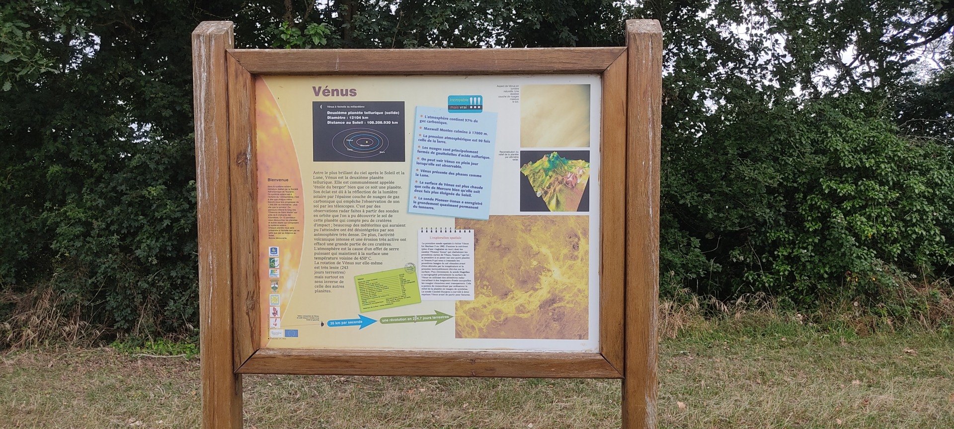 Ce circuit de 6,7 km vous permettra en partant du Soleil, à l’entrée de l’Observatoire, de découvrir chacune des planètes de notre Système solaire et de prendre conscience des distances les séparant.